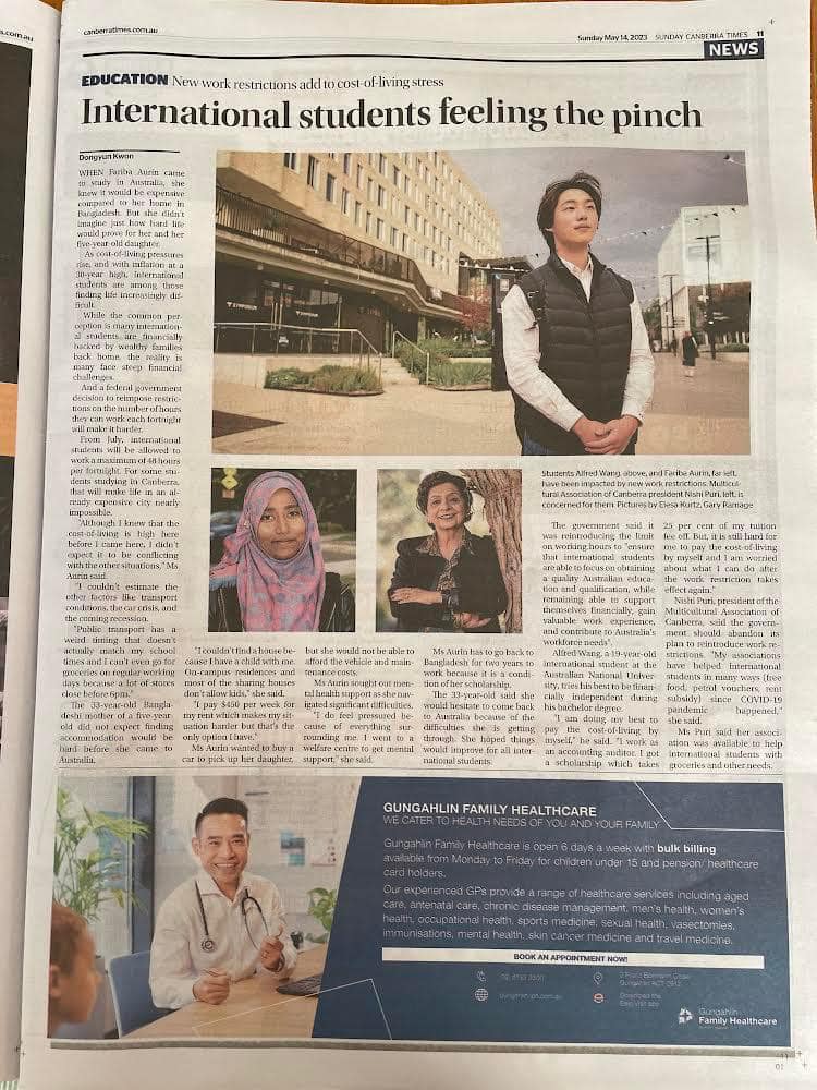 In a recent development, the President of the Multicultural Association of Canberra (MAC), Mrs Nishi Puri, has taken a bold step in lobbying for fair working regulations for international students. The focus of this initiative is to advocate for international students’ working hours, which are currently capped at 40 hours per fortnight. Effective from 1 July 2023, the MAC President aims to push for an increase in the limit to 48 hours per fortnight, opening up new opportunities and easing financial burdens for international students.