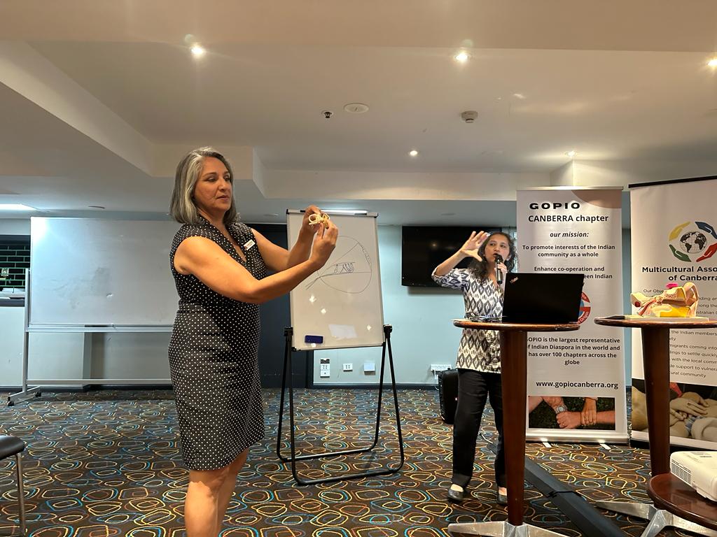 Multicultural Association of Canberra (MAC), in collaboration with GOPIO Canberra, organised an enlightening audiology workshop at the Labor Club (19/11/23). The focus of the workshop was early intervention for hearing loss in adults. Facilitated by Hear Life audiologists Sanyogeeta and Ann Mary, the session delved deep into topics ranging from the intricacies of ear structure to the causes of hearing loss, the role of nutrition in ear health, managing tinnitus, insights into cochlear implants, and practical guidance on using hearing aids.